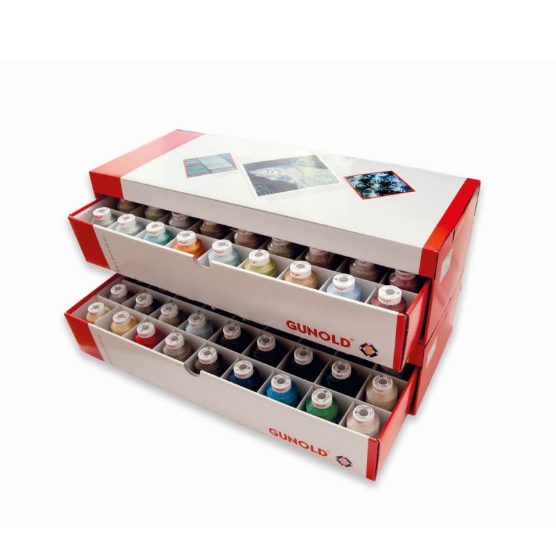Gunold, yüksek kaliteli nakış iplikleri,çok amaçlı nakış telaları,özel efekt nakış aksesuarları ile geniş bir ürün yelpazesiyle hizmet vermektedir. Birkaçından bahsetmek gerekirse: Nakış viskoz iplikleri SULKY, polyester iplikler POLY, alev geciktirici iplik POLY FIRE veya özel "karanlıkta parlayan" iplik GLOWY. Gunold'un türünün tek örneği destek yelpazesi kendisi için konuşur. STEP, FELTY, TWILLY veya PUFFY gibi özel kumaş çeşitleri, yaratıcılığı daha da ileriye taşır. Yapışkan spreyler, iğneler, makaslar ve daha birçok özel ürün, geniş nakış malzemeleri yelpazesini tamamlar.